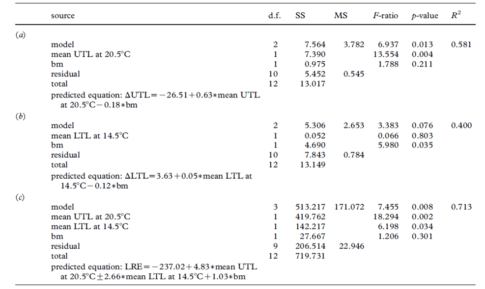- Descubrió que los cangrejos porcelana con los mejores UTL y LTL tenían las más bajas capacidades de aclimatación de estos rangos (ΔUTL y ΔLTL) à Sugirió que este taxón podría ser más sensible a mayores cambios climáticos